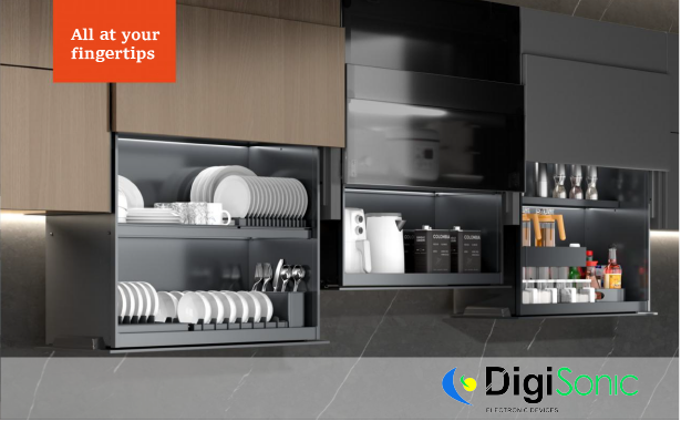 Digisonic’s motorized lifts differing from their final destination: cabinets, recessed wall, ceiling